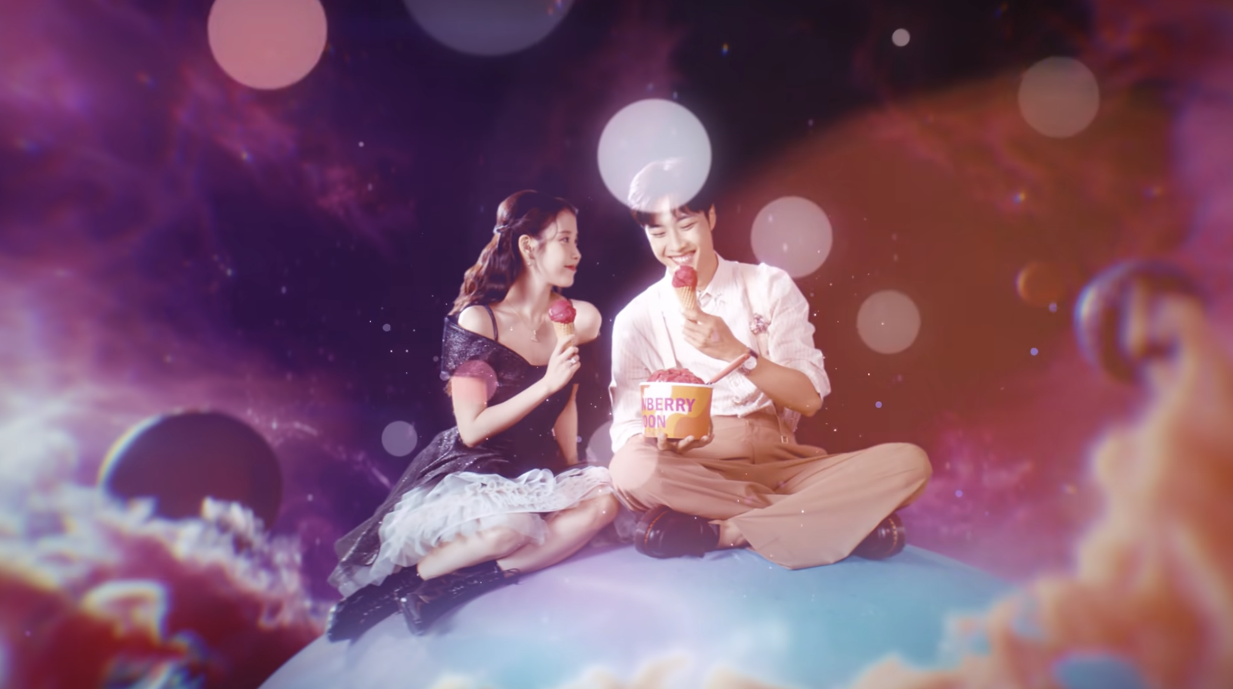 所以這也是為什麼MV中IU和男主角이종원是坐在藍色星球上