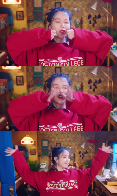 MV的2分58秒處可以看見IU唱到「我們的四邊框 『Bloom』」的時候有用手做出吹大後爆炸的樣子。